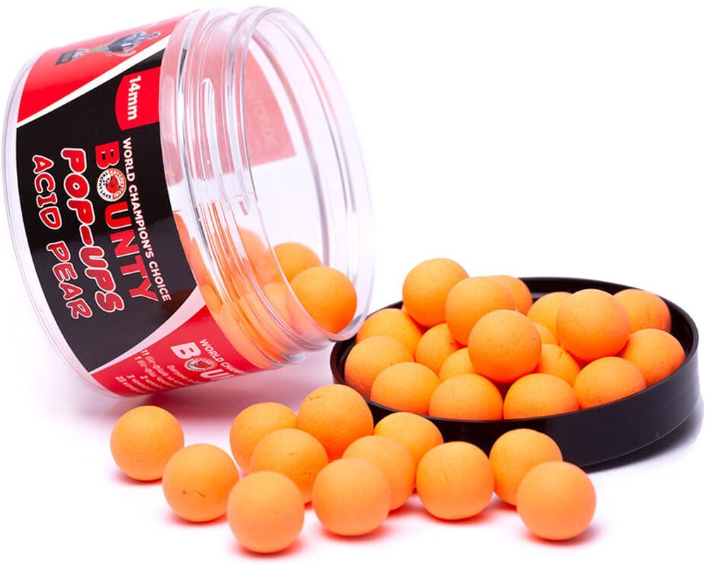 Бойлы Bounty Pop-Up Acid Pear 10 мм 55 шт. — поп-апы круглой формы для насадки, основная задача которых — сделать крючок легче, чтобы он быстрее попадал в рот карпу. Поп-апы от Bounty имеют очень стабильную плавучесть — крючок может держаться в нужном положении несколько дней. Они бывают разных диаметров: 8 мм, 10 мм, 12 мм, 14 мм. Все банки вполне герметичны. Благодаря этому поп-апы хорошо сохраняются, а запаха в авто нет.