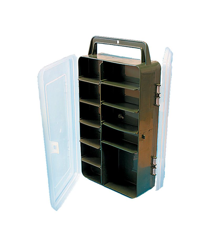 Средняя двусторонняя коробка с отсеками для хранения рыболовных мелочей. Имеется ручка для переноски.
