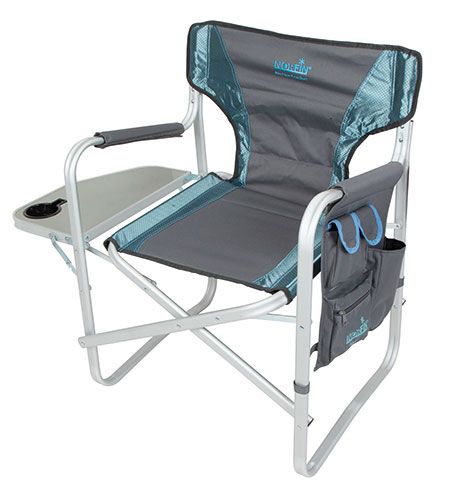 Кресло складное с алюминиевым каркасом, откидным столиком, боковым карманом для телефона и мелочей, смягченное сиденье и спинка. Конструкция ножек кресла придает дополнительную устойчивость креслу, препятствует его проваливанию в песок или рыхлую землю.