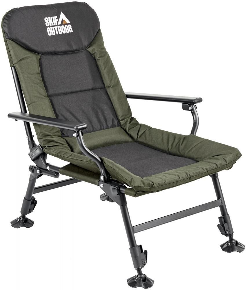 Skif Outdoor Comfy L — удобное мягкое кресло с простым и в то же время современным дизайном, для рыбалки и отдыха на природе. Прочный каркас состоит из стальных трубок, благодаря чему способен выдерживать большие нагрузки, и телескопических ножек, изготовленных из алюминия, что облегчает общий вес кресла. Основная часть выполнена из износостойкой ткани Oxford 600D — неприхотливого в уходе материала, который прослужит на протяжении длительного периода времени. Посадочное место без труда отсоединяется от каркаса для чистки и даже стирки. Спинка закрепляется с помощью фиксаторов с двух сторон, которые позволяют регулировать ее наклон вплоть до лежачего положения. Быстрая регулировка угла наклона спинки позволяет разгрузить поясницу, что очень важно во время длительного сидения. Телескопическая конструкция ног предусматривает установку кресла на неровном рельефе, широкие лапы предотвращают проваливание в мягкий грунт и песок, а их шарнирное крепление, позволяет без труда адаптировать кресло под любой наклон поверхности. Стул Skif Outdoor Comfy оборудован пластиковыми подлокотниками и мягкими подголовниками, обеспечивающими дополнительный комфорт. Стул компактно складывается и легко поместится в багажник автомобиля.