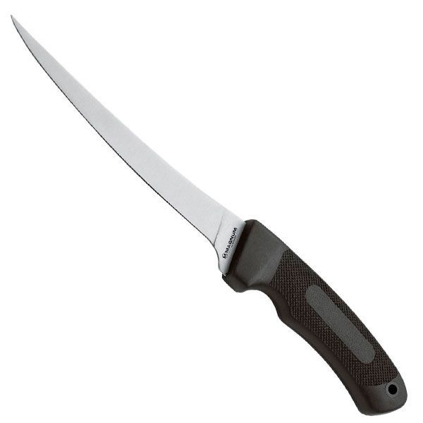 Филейные ножи Magnum оснащены нескользящей рукояткой, изготовленной из синтетического эластомера Кратона и очень эластичным тонким лезвием, изготовленным из коррозиеустойчивой стали 440. Ножи комплектуются пластиковыми ножнами с креплением на пояс и дренажными отверстиями для отвода влаги.