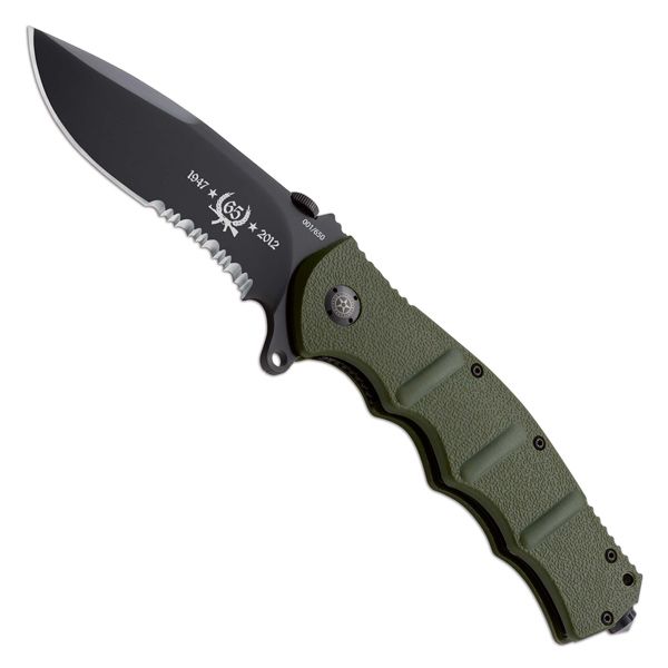 Дух технического новаторства и дизайнерского мастерства знаменитого конструктора М. Калашникова воплощен во всемирно известном и, возможно, наиболее часто используемом во всем мире автомате. Как владельцы официального разрешения на производство ножей с именем М. Калашникова, компания Boker проанализировала причины, приведшие к успеху детище легендарного оружейника, следствием чего стала юбилейная серия, посвященная 65-тилетию автомата Калашникова. Накладки рукоятки Boker Plus Kalashnikov AK101 Anniversary из легкого прочного стеклопластика Zytel компании DuPont надежно соединены с массивными стальными пластинами. В моделях Mini Liner-Lock, Automatic и Taschenmesser Liner-Lock накладки из алюминия. На клинок со специальным сатинированным покрытием нанесен юбилейный логотип. В рукояти ножей Boker Plus Kalashnikov AK101 Anniversary находится съемный стеклобой. Модели Boker Plus Kalashnikov AK101, Automatic, Taschenmesser Liner-Lock и Mini Liner-Lock Anniversary выпущены ограниченным количеством 650 экземпляров, что подтверждается серийным номером и специальным сертификатом.
