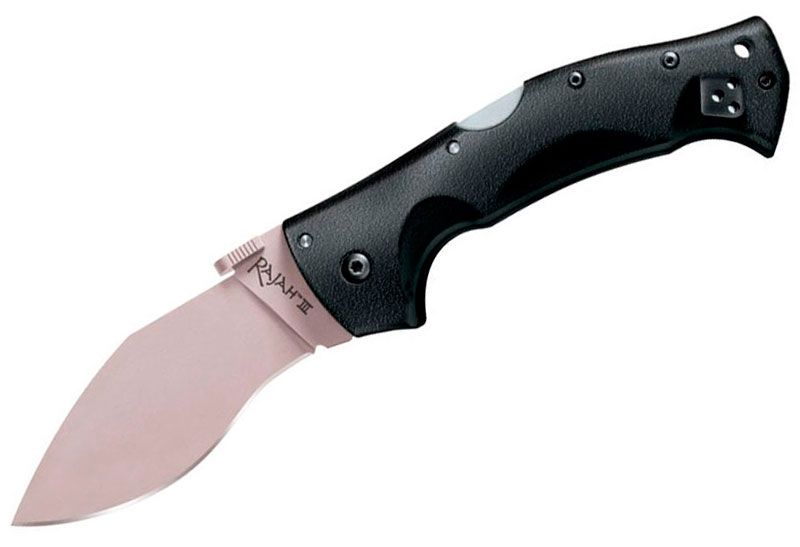 Нож Cold Steel Rajah III принадлежит к модельной линейке авторитетного бренда Cold Steel, которая ориентирована на выполнение мощных рубяще-режущих действий. Ножик Cold Steel Rajah III оснащён твёрдым широким клинком. Он изготовлен из нержавеющей стали марки AUS 8A и обладает оригинальными спусками от обуха. Эти ножи владеют ещё и фирменным замком Tri-Ad Lock. Поэтому данная модель максимально безопасна при использовании. Рукоять ножа изготовлена из первоклассного материала Grivory. Она обладает отличной имитацией гарды и великолепным эргономичным дизайном. Поэтому можно не сомневаться, что приложенное усилие пользователя будет максимально эффективно использовано ножом.