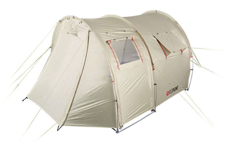 Модель Red Point Tavrika 4 – просторная и высокая четырехместная палатка «тунельного» типа с вместительным тамбуром, в котором можно стоять практически в полный рост. Палатка снабжена 3 большими, полностью продублированными антимоскиной сеткой, многофункциональными окнами улучшеной конструкции, которе могут бать: полностью закрытми, поностью открытими, приоткрытыми во время дождя и ветра, но при этом обеспечивающими прекрасную вентиляцию всей палатки.