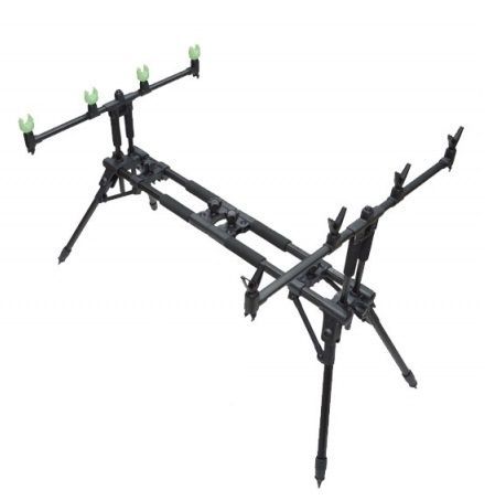 Род-под из алюминиевого сплава на 3-4 удилища (дополнительное крепление для сигнализатора/рогача по центру буз-бара). Особая конструкция несьемных ног и П-образных стоек (буз-бар) , позволяют установить род-под за минимальное время. Крепкая продольная двойная рама с телескопической, двухсторонней регулировкой. Усиленная крепёжная гарнитура всех соединений обеспечивает высокую стабильность и прочность конструкции. Раздельно регулируемые ноги позволяют установить род-под в самых различных вариантах и на неровных поверхностях. В сложенном виде компактен и удобен для перевозки. Благодаря применению алюминия и хорошо продуманной конструкции, вес род-пода при его надежности и мощности всего 3,2 кг.