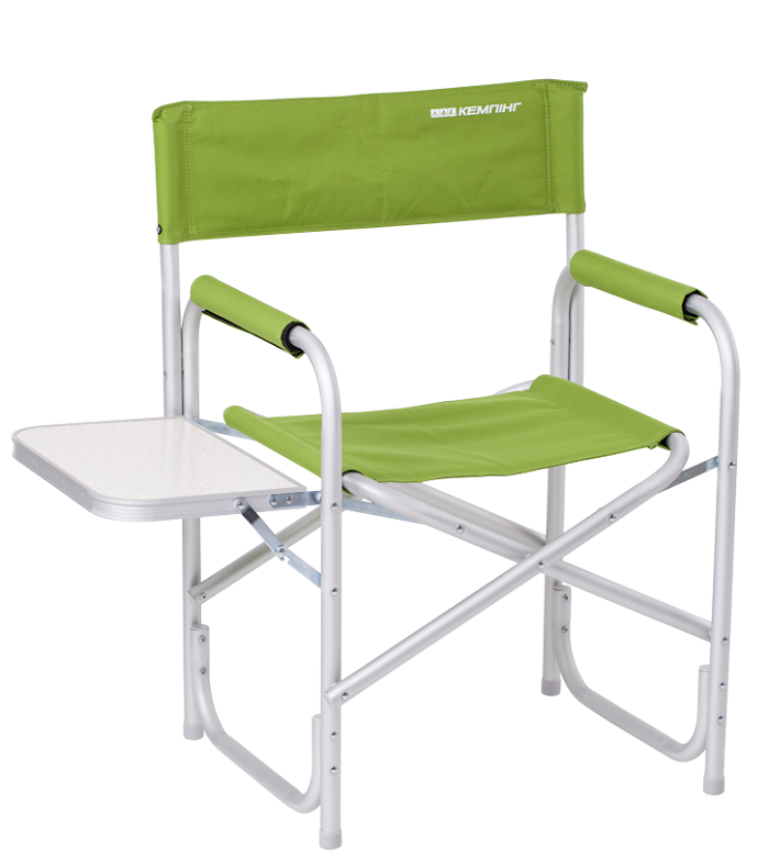 Удобный компактный раскладной стул с небольшим откидывающимся столиком. На столике поместится и чашка, и тарелка, и рыбацкие мелочи, если стул используется для рыбалки. Модель не занимает много места, легко раскладывается и складывается.