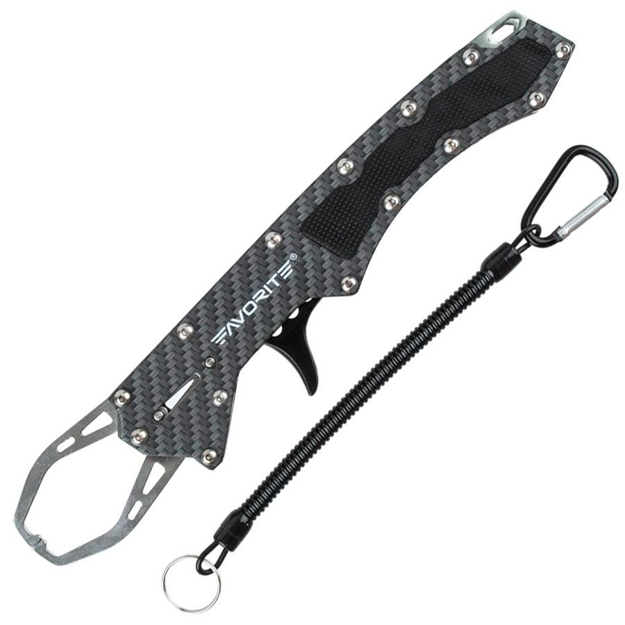 Липгрип Favorite выполнен из металла в современном эргономичном дизайне. Модель выпускается в двух размерах 150 и 238 мм. Благодаря использованию современных сплавов удалось добиться высокой прочности и низкого веса. Что большой, что маленький захват удобно ложиться в руке и позволяет одной рукой производить все манипуляции по удержанию рыбы. Липгрип Favorite имеет тонкие обжимные клешни из нержавеющей стали, которые, не смотря на свою деликатность, помогают легко справиться, как с мелкой, так и с очень крупной рыбой. Все липгрипы Favorite оснащены пластиковым ретривером, предотвращающим потерю инструмента.